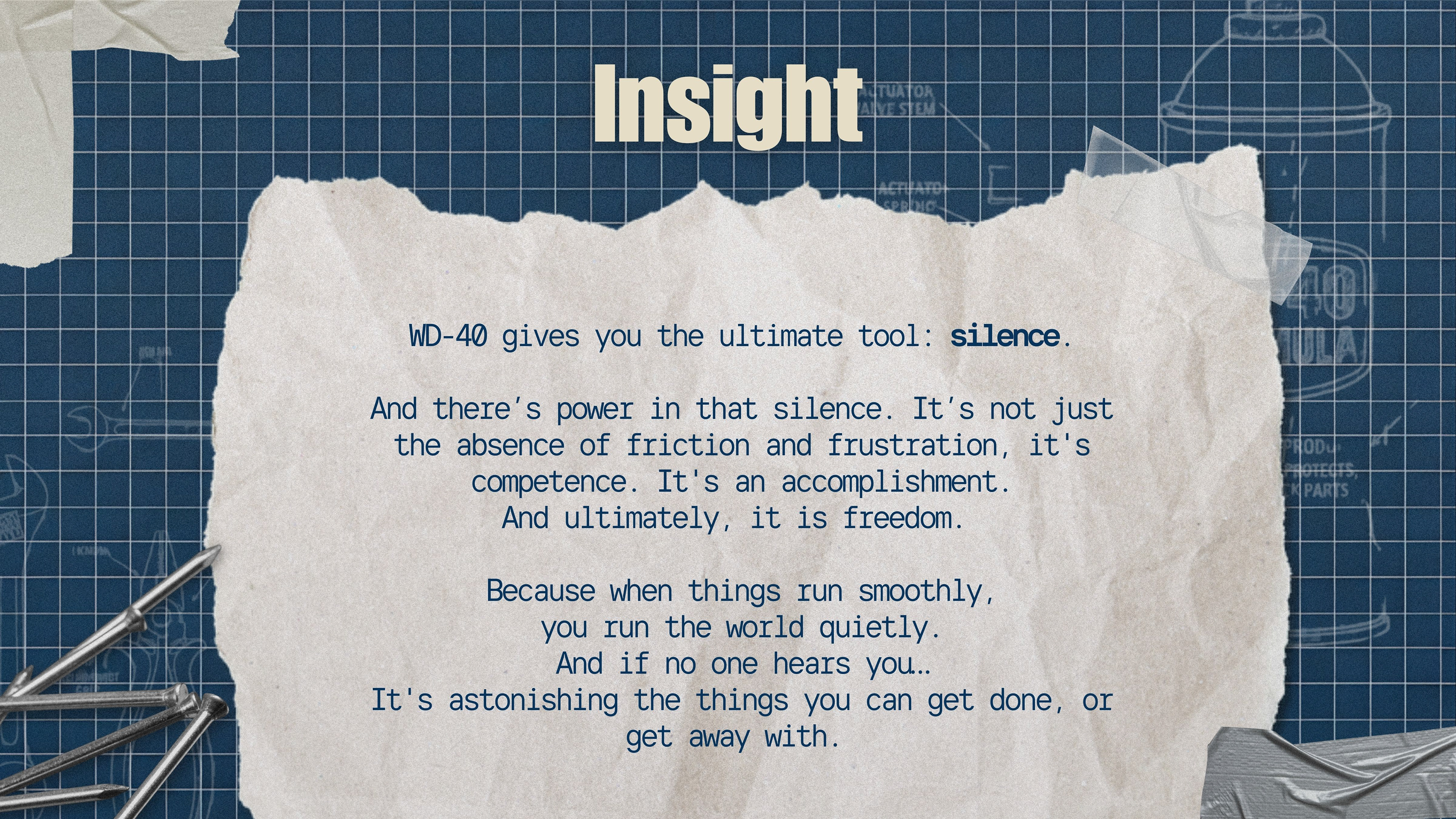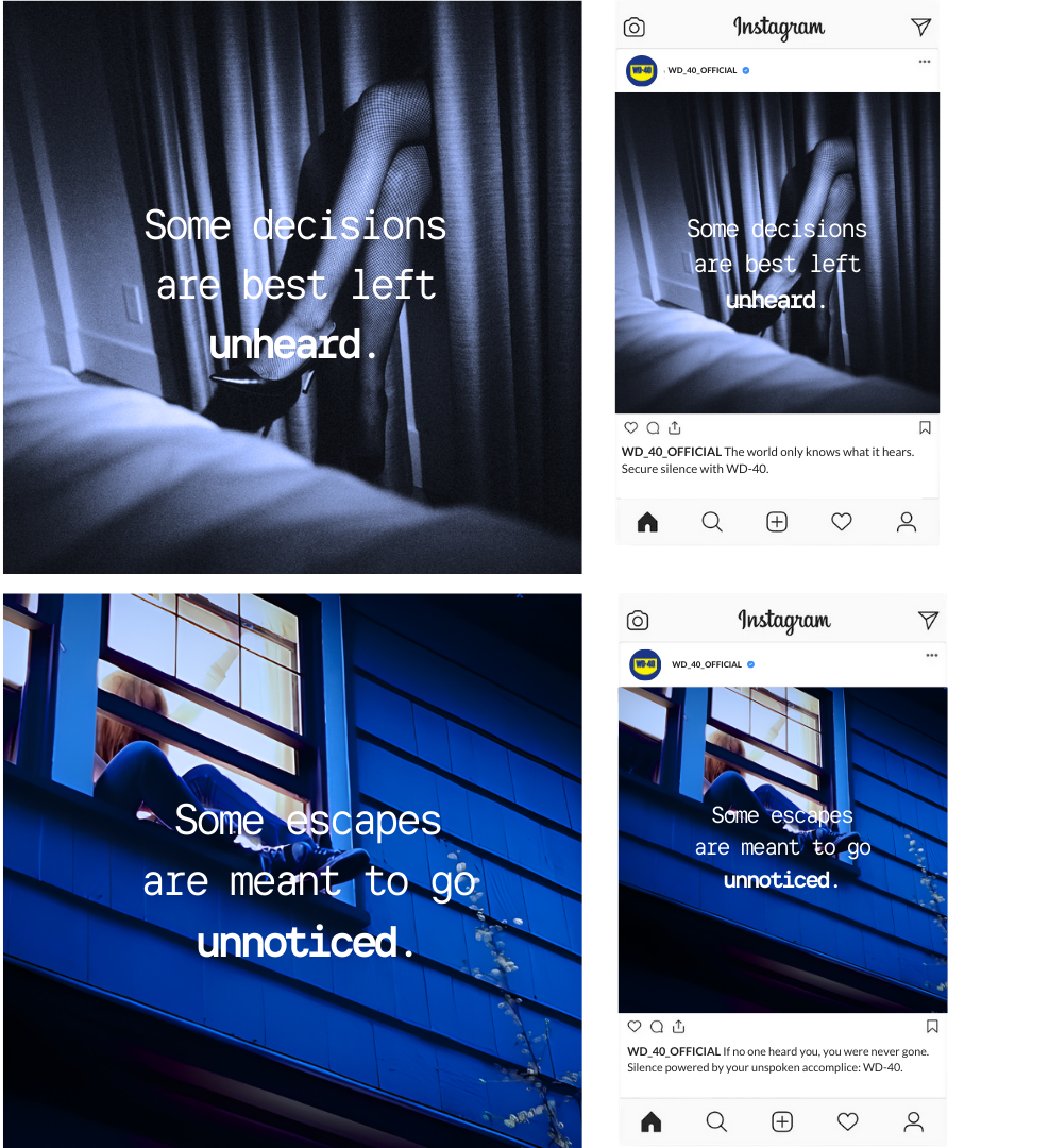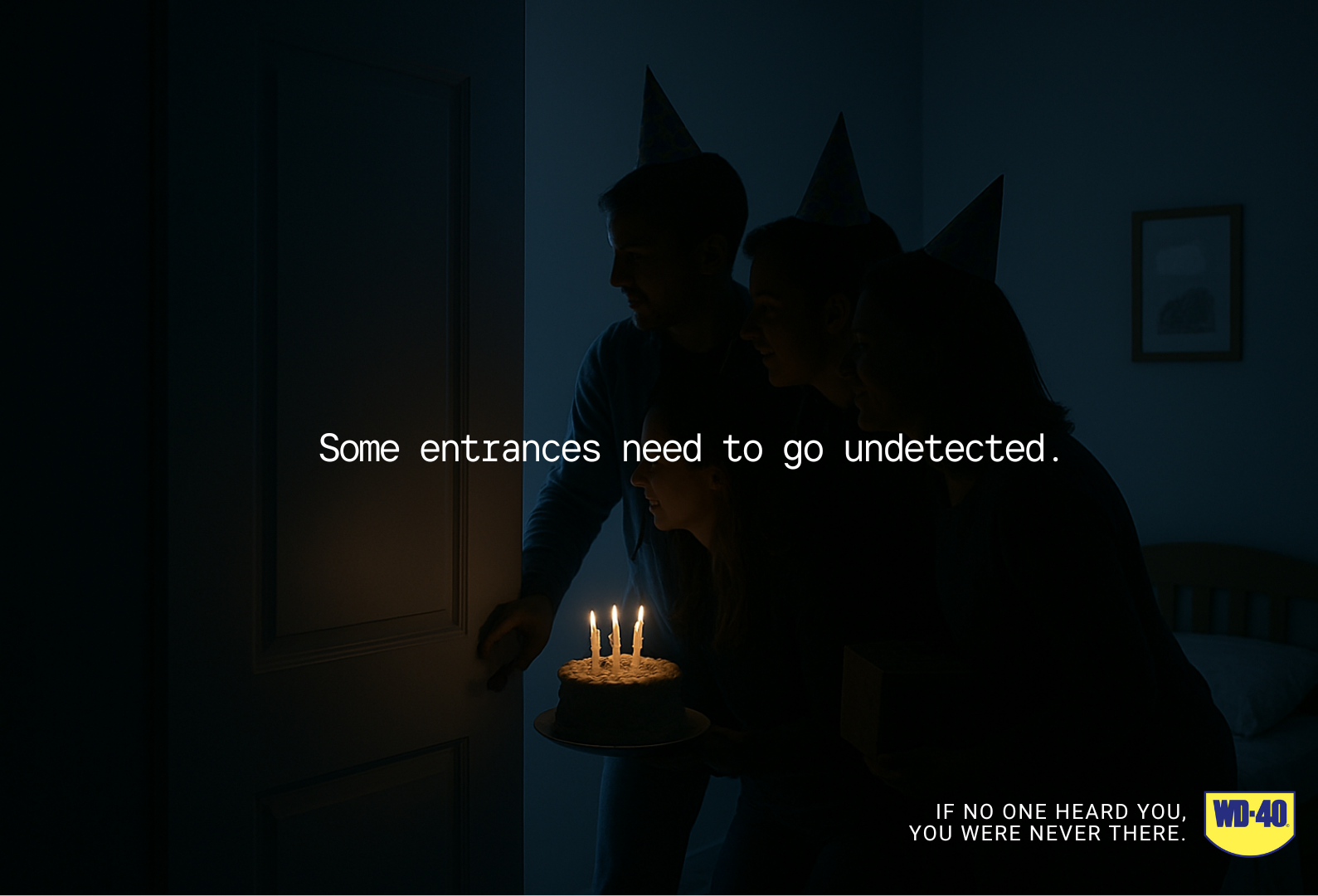 Social ads will pick up with an After Dark leg of the campaign, leaning into more adult, slightly spicy scenarios. These moments hint at risk, secrecy, and a little thrill, all made easier when things stay quiet. And of course, the only reason they do is because there’s a can of WD 40 nearby.